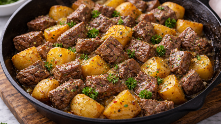 Garlic Butter Beef Bites with Potatoes